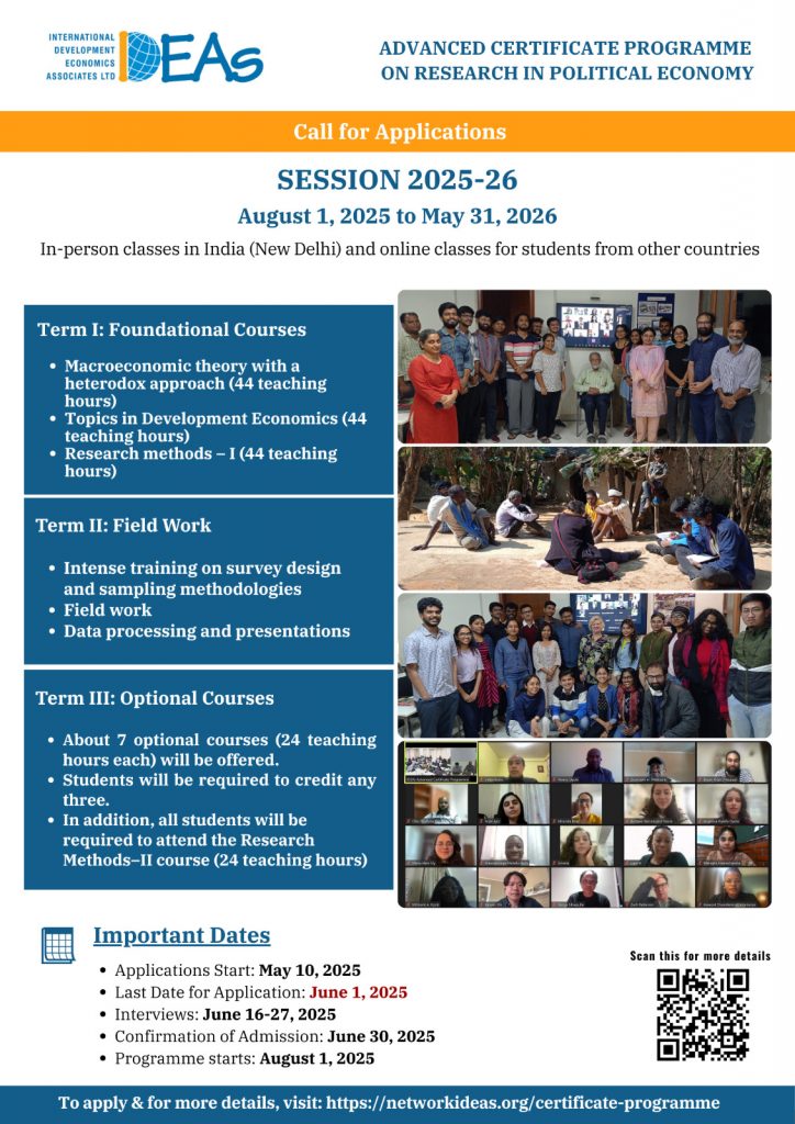 The last date for applying for the next academic session of the Certificate Programme is coming up. We need interesting applications from different parts of the global south. Please share this information.