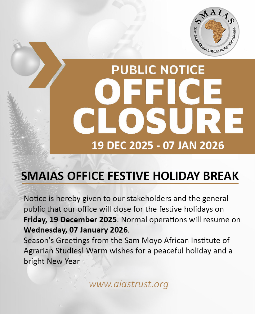 The SMAIAS and Agrarian South Network invite all members of the public to attend the second Sam Moyo Memorial lecture on Sam Moyo and Samir Amin on the Peasant Question to be delivered by Prof. Issa Shivji of the Nyerere Resource Centre, Tanzania on the 22 nd of January 2019. The lecture which will start at 18:30 hrs will be held at Bronte Hotel, Harare, Zimbabwe.